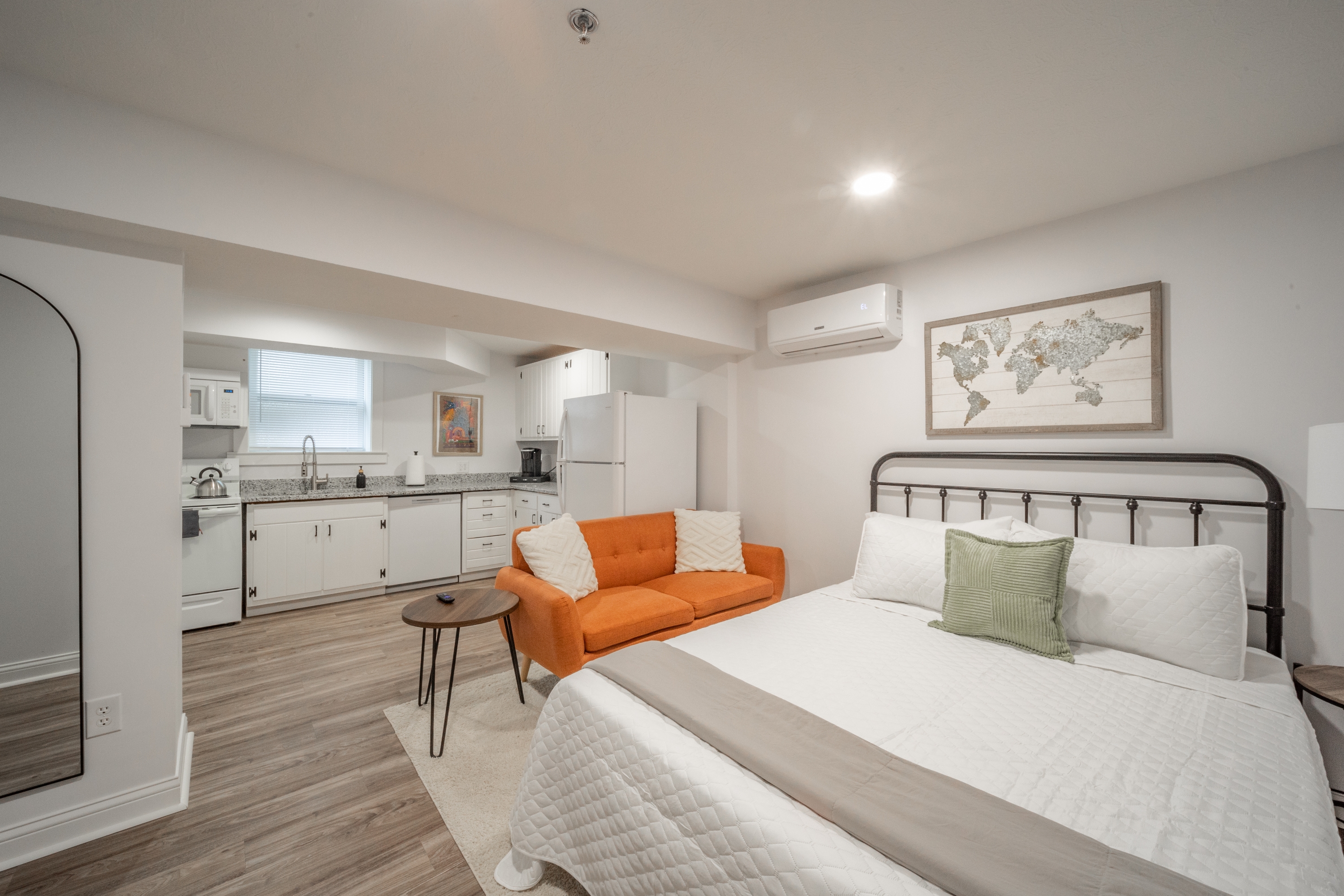 Welcome to our newly constructed, secure, quiet, and centrally located studio apartment in downtown Indy. With 100% brand new everything, our cozy and convenient studio unit offers a comfortable and enjoyable stay. Located in a convenient and quiet building w/electronic security, your safety is our priority. Just 4 blocks from Mass Ave, our walkable location puts you in the heart of the city's vibrant scene. Perfect for traveling professionals, business or leisure, our studio provides a hassle-free & memorable stay in Indianapolis. Fully furnished including high speed internet, in-unit laundry, all linens, dishes, appliances, and furnishings. Flexible lease terms available. This unit is set up perfectly for traveling professionals. IU Health Methodist Hospital: Approximately 1.2 miles away. Eskenazi Health: Approximately 1.4 miles away. IU Health University Hospital: Approximately 1.5 miles away.